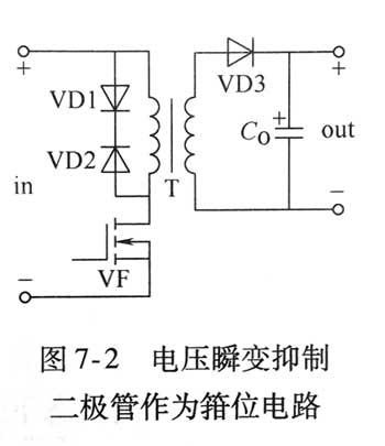 反激式電源適配器的另外一種箝位方式是采用類(lèi)似于穩(wěn)壓二極管的“電壓瞬變抑制二極管”來(lái)沿位開(kāi)關(guān)管漏源極電壓峰值?在理論上,采用電壓瞬變抑制二極管可以使箝位時(shí)間大大縮短,所消耗的箝位功率也會(huì)比RCD箝位低一些。 過(guò)去電壓瞬變抑制二極管箝位之所以沒(méi)有被普遍應(yīng)用的較主要的原因是這類(lèi)二極管價(jià)格昌,2年前,一個(gè)連續(xù)功耗25W,m,廠時(shí)功率190的電壓瞬變抑制二極管的零售價(jià)接近每只10元m°牛人民幣,這是一般的反激式電源適配器絕不會(huì)采用的。 近年來(lái),隨著電壓瞬變抑制二極管的國(guó)產(chǎn)化和大量的應(yīng)用電壓瞬變抑制二極管的價(jià)格已經(jīng)可以比較輕松地應(yīng)用在反激式電源適配器中?采用電壓瞬變抑制二極管的而箝位電路如圖7-2所示。 圖中VDl為電壓瞬變抑制二極管? 需要注意的是,采用電壓瞬變抑制二極管來(lái)箝位,希望變壓器和開(kāi)關(guān)管的寄生電容越小越好。