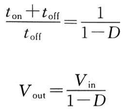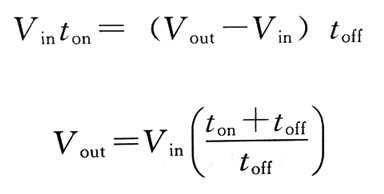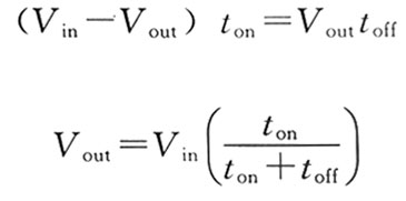 式中,Vout=輸出電壓; toff=關(guān)斷時(shí)間,Q1; Vin=輸入電壓; ton=導(dǎo)通時(shí)間,Q1。 其比率