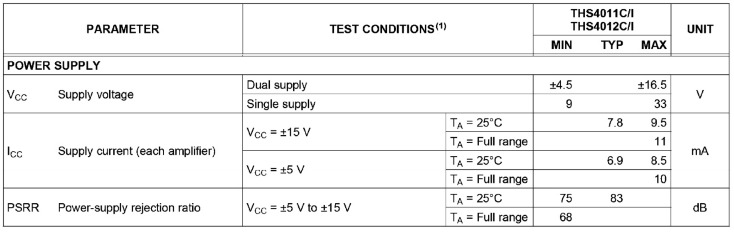 | 電源適配器電壓定義為可使放大器工作在線性區的可接受的VDD(或+VCC)和VSS(或-VCC)之間的差值。如果電壓差小于規定值,則放大器很可能無法可靠地工作。如果電源適配器電壓高于規定值,雖然放大器可以按預期工作,但由于施加給放大器內晶體管的電壓過大,很可能導致器件損壞。在產品數據手冊的參數表中,通常會給出該放大器的絕對較大額定值(AbsoluteMaximumRatings),放大器的電源適配器電壓一定不能夠超過該數值。例如,OPA690的電源適配器電壓較大額定值為±6.5V。 電源適配器電流(IDD、IQ或ICC)指定為空載條件下的電流。通常,當放大器帶有負載時,拉電流主要會從VDD引腳輸出,流經運放的輸出級然后流向負載,而灌電流主要會導致VSS增加。 電源適配器參數(VSS、VDD和IDD、IQ)通常作為獨立項出現在產品數據手冊的參數表中。該參數偶而也會作為PSRR參數的測試條件。圖所示為[1]THS4011、THS4012數據表的電源適配器參數。 ![]() 電源適配器抑制比(PSRR) 1.電源適配器電壓抑制比的定義 電源適配器抑制比(PSRR,PowerSupplyRejectionRatio)是與電源適配器抑制比參數kSVR相同的。它被定義為電源適配器電壓的改變量與由此引起的輸入失調電壓改變量之比的絕對值。在一般情況下,電源適配器的兩個端電壓是對稱變化的。它的單位是分貝(dB)。 電源適配器電壓會影響到輸入差分對的偏置點。由于輸入電路固有不匹配,偏置點的改變會引起失調電壓的改變,進而引起輸出電壓的改變。 對于雙電源適配器運放,PSRR=ΔVCC±/ΔVOS或者ΔVDD±/ΔVOS。ΔVCC±中的正負號表示正負電源適配器是對稱地改變的。對于單電源適配器運放,PSRR=ΔVCC/ΔVOS或者ΔVDD/ΔVOS。同時還應該看到,PSRR的生成機理是與共模抑制比CMRR相同的。因此,在數據手冊中,PSRR也被歸入直流參數。當把PSRR與頻率的關系畫成曲線時,這條曲線將隨頻率的增加而下降。 如果改變運放的供電電壓,其輸出電壓本不應該發生變化,但是實際上它的確會有變化。如果供電電壓改變X伏時引起的輸出電壓變化量與差分輸入改變Y伏引起的輸出變化相等,那么運放的PSRR=X/Y。在PSRR的定義中,假設電源適配器正負電壓同時向相反方向改變同樣的大小,否則將引起共模變化,令分析更為復雜。PSRR不同,對電源適配器正負電壓的抑制效果也不同。 2.電源適配器電壓波動對輸出電壓的影響 電源適配器電壓波動對輸出電壓有直接的影響。 〖舉例〗對于電池供電的放大器電路要求運放必須具有良好的電源適配器抑制性能。在圖1.1.2所示電路中,使用電池來為放大器供電,放大器被配置為具有高閉環增益101V/V。 ![]() 在電池的生命周期中,隨著使用時間的推移,電池的輸出電壓會從5.75V逐漸降至4.75V。如果該放大器的電源適配器抑制比為500μV/V(或66dB),隨著時間推移,放大器輸出端的誤差將為50.5mV。在一個滿量程為4.096V的12位系統中,這相當于在電池的生命周期中,失調電壓變化量的50.5倍。 PSR(V/V)=ΔVOS/ΔVSUPPLY VOUT=(1+RF/RIN)(VIN+VOS) 在電池供電應用中,可以看見電池供電電壓會在電池的整個生命周期中變化幾百毫伏。若將此類應用中運放配置為高閉環增益,則要求運放必須具有良好的電源適配器抑制性能。 3.電源適配器抑制比的頻率響應 電源適配器抑制比參數量化了放大器對電源適配器變化的敏感度。理想情況下,電源適配器抑制比應該是無窮大。一般放大器的電源適配器抑制比的范圍為60~100dB。 與放大器的開環增益(AOL)特性一樣,PSRR也是頻率的函數,隨著頻率的升高,PSRR的數值開始下降。如圖1.1.3所示[4],電源適配器產生的變化(或者噪聲,疊加在電源適配器上的噪聲也會引起電源適配器電壓的變化)在1kHz以下,+PSRR約為130dB;之后,隨著頻率的上升,PSRR不斷下降。而-PSRR隨著頻率的上升,不斷下降。很明顯,對高頻電源適配器變化(噪聲)的抑制能力要低于對直流和低頻電源適配器變化(噪聲)的抑制能力。 ![]() 注意:開關電源適配器產生的噪聲頻率為50~500kHz或者更高。在這些頻率范圍,PSRR的幾乎為零。所以,在電源適配器上的噪聲會引起運算放大器在輸出端產生噪聲。對此,必須采用適當的旁路(去耦)技術。 在閉環系統中,放大器的電源適配器抑制能力略低于理想情況,它表現為失調電壓誤差的形式(PSRRERROR=ΔVOS)。描述這一誤差的公式如下: PSRR(dB)=20lg(ΔVSUPPLY/ΔVOS) 描述電源適配器抑制能力的公式為 PSR(V/V)=ΔVOS/ΔVSUPPLY 式中,VSUPPLY=VDD-VSS;ΔVOS表示電源適配器電壓變化ΔVSUPPLY時,引起輸出電壓變化ΔVO折合到輸入端的失調電壓,ΔVOS=ΔVO/ΔAvd。ΔAvd為放大器的直流放大倍數。 〖舉例〗帶有較小5倍增益的寬電源適配器范圍、軌到軌輸出儀器放大器INA827的PSRR(電源適配器抑制比)與增益和頻率的關系[5]如圖1.1.4所示,±PSRR(電源適配器抑制比)隨著增益的增加而加大,隨著頻率的增加而減小。