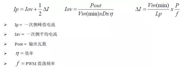 2)決定一次側濾波電容: 濾波電容的決定,可以決定電容器上的Vin(min),濾波電容越大,Vin(win)越高,可以做較大瓦數的Power,但相對價格亦較高。 3)決定變壓器線徑及線數: 當變壓器決定后,變壓器的Bobbin即可決定,依據Bobbin的槽寬,可決定變壓器的線徑及線數,亦可計算出線徑的電流密度,電流密度一般以6A/mm2為參考,電流密度對變壓器的設計而言,只能當做參考值,后面應以溫升記錄為準。 4)決定Duty cycle(工作周期): 由以下公式可決定Duty cycle ,Duty cycle的設計一般以50%為基準,Duty cycle若超過50%易導致振蕩的發生。