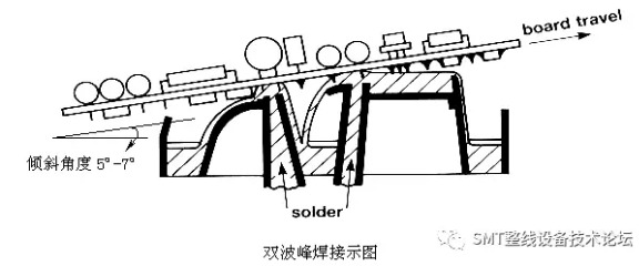 下面以雙波峰焊機(jī)的工藝流程為例,來說明波峰焊的工作原理 :