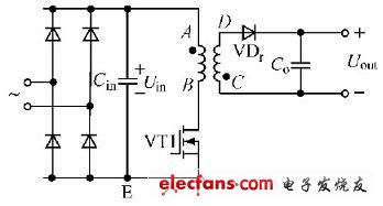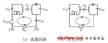 | 一、高頻變壓器與EMI 高頻變壓器中傳導(dǎo)EMI產(chǎn)生機(jī)理以反激式變換器為例,其主電路如圖1所示。 開(kāi)關(guān)管開(kāi)通后,變壓器一次側(cè)電流逐漸增加,磁芯儲(chǔ)能也隨之增加。當(dāng)開(kāi)關(guān)管關(guān)斷后,二次側(cè)整流二極管導(dǎo)通,變壓器儲(chǔ)能被耦合到二次側(cè),給負(fù)載供電。 ![]() 圖1反激變換器 在開(kāi)關(guān)電源中,輸入整流后的電流為尖脈沖電流,開(kāi)關(guān)開(kāi)通和關(guān)斷時(shí)變換器中電壓、電流變化率很高,這些波形中含有豐富的高頻諧波。另外,在主開(kāi)關(guān)管開(kāi)關(guān)過(guò)程和整流二極管反向恢復(fù)過(guò)程中,電路的寄生電感、電容會(huì)發(fā)生高頻振蕩,以上這些都是電磁干擾的來(lái)源。開(kāi)關(guān)電源中存在大量的分布電容,這些分布電容給電磁干擾的傳遞提供了通路,如圖2所示。圖2中,LISN為線性阻抗穩(wěn)定網(wǎng)絡(luò),用于線路傳導(dǎo)干擾的測(cè)量。干擾信號(hào)通過(guò)導(dǎo)線、寄生電容等傳遞到變換器的輸入、輸出端,形成了傳導(dǎo)干擾。變壓器的各繞組之間也存在著大量的寄生電容,如圖3所示。圖3中,A、B、C、D4點(diǎn)與圖1中標(biāo)識(shí)的4點(diǎn)相對(duì)應(yīng)。 ![]() 圖2反激式開(kāi)關(guān)電源寄生電容典型的分布 ![]() 圖3變壓器中寄生電容的分布 在圖1所示的反激式開(kāi)關(guān)電源中,變換器工作于連續(xù)模式時(shí),開(kāi)關(guān)管VT導(dǎo)通后,B點(diǎn)電位低于A點(diǎn),一次繞組匝間電容便會(huì)充電,充電電流由A流向B;VT關(guān)斷后,寄生電容反向充電,充電電流由B流向A。這樣,變壓器中便產(chǎn)生了差模傳導(dǎo)EMI。同時(shí),電源元器件與大地之間的電位差也會(huì)產(chǎn)生高頻變化。由于元器件與大地、機(jī)殼之間存在著分布電容,便產(chǎn)生了在輸入端與大地、機(jī)殼所構(gòu)成回路之間流動(dòng)的共模傳導(dǎo)EMI電流。 具體到變壓器中,一次繞組與二次繞組之間的電位差也會(huì)產(chǎn)生高頻變化,通過(guò)寄生電容的耦合,從而產(chǎn)生了在一次側(cè)與二次側(cè)之間流動(dòng)的共模傳導(dǎo)EMI電流。交流等效回路及簡(jiǎn)化等效回路如圖4所示。圖4中:ZLISN為線性阻抗穩(wěn)定網(wǎng)絡(luò)的等效阻抗;CP為變壓器一次繞組與二次繞組間的寄生電容;ZG為大地不同點(diǎn)間的等效阻抗;CSG為輸出回路與地間的等效電容;Z為變壓器以外回路的等效阻抗。 ![]() 圖4變壓器中共模傳導(dǎo)EMI的流通回路 二、變壓器中EMI代表的是什么 變壓器中EMI代表的是電磁干擾。 變壓器與EMI之間有如下的關(guān)系: 1.由于變壓器的線圈帶有高頻電流,因此變壓器實(shí)際上已成為接收磁場(chǎng)的天線。這些 磁場(chǎng)會(huì)沖擊附近的走線,并通過(guò)這些走線將磁場(chǎng)傳導(dǎo)或輻射到密封的范圍以外; 2.由于部分線圈有交流電壓,因此實(shí)際上它們也成為接收電磁場(chǎng)的天線; 3.初級(jí)及次級(jí)線圈之間的寄生電容可以將噪聲傳送到絕緣層之外。由于次級(jí)線圈的接地通常都與底板連在一起,因此這些噪聲又會(huì)通過(guò)這個(gè)接地面?zhèn)魉突貋?lái),成為共模噪聲。為了減少泄漏電感,將初級(jí)及次級(jí)線圈緊靠在一起,但這樣也會(huì)增加線圈的互感,從而增加共模噪聲 知識(shí)點(diǎn)延伸: 電磁干擾(Electromagnetic Interference,EMI)是干擾電纜信號(hào)并降低信號(hào)完好性的電子噪音,EMI通常由電磁輻射發(fā)生源如馬達(dá)和機(jī)器產(chǎn)生。電磁干擾是人們?cè)缇桶l(fā)現(xiàn)的電磁現(xiàn)象,它幾乎和電磁效應(yīng)的現(xiàn)象同時(shí)被發(fā)現(xiàn)。 三、開(kāi)關(guān)電源EMI設(shè)計(jì) 1.開(kāi)關(guān)電源的EMI源 開(kāi)關(guān)電源的EMI干擾源集中體現(xiàn)在功率開(kāi)關(guān)管、整流二極管、高頻變壓器等,外部環(huán)境對(duì)開(kāi)關(guān)電源的干擾主要來(lái)自電網(wǎng)的抖動(dòng)、雷擊、外界輻射等。 (1)功率開(kāi)關(guān)管 功率開(kāi)關(guān)管工作在On-Off快速循環(huán)轉(zhuǎn)換的狀態(tài),DV/DT和DI/DT都在急劇變換,因此,功率開(kāi)關(guān)管既是電場(chǎng)耦合的主要干擾源,也是磁場(chǎng)耦合的主要干擾源。 (2)高頻變壓器 高頻變壓器的EMI來(lái)源集中體現(xiàn)在漏感對(duì)應(yīng)的di/dt快速循環(huán)變換,因此高頻變壓器是磁場(chǎng)耦合的重要干擾源。 (3)整流二極管 整流二極管的EMI來(lái)源集中體現(xiàn)在反向恢復(fù)特性上,反向恢復(fù)電流的斷續(xù)點(diǎn)會(huì)在電感(引線電感、雜散電感等)產(chǎn)生高dv/dt,從而導(dǎo)致強(qiáng)電磁干擾。 (4)PCB 準(zhǔn)確的說(shuō),PCB是上述干擾源的耦合通道,PCB的優(yōu)劣,直接對(duì)應(yīng)著對(duì)上述EMI源抑制的好壞。 2.開(kāi)關(guān)電源EMI傳輸通道分類 (1)傳導(dǎo)干擾的傳輸通道 1)容性耦合 2)感性耦合 3)電阻耦合 a.公共電源內(nèi)阻產(chǎn)生的電阻傳導(dǎo)耦合; b.公共地線阻抗產(chǎn)生的電阻傳導(dǎo)耦合; c.公共線路阻抗產(chǎn)生的電阻傳導(dǎo)耦合; (2)輻射干擾的傳輸通道 1)在開(kāi)關(guān)電源中,能構(gòu)成輻射干擾源的元器件和導(dǎo)線均可以被假設(shè)為天線,從而利用電偶極子和磁偶極子理論進(jìn)行分析;二極管、電容、功率開(kāi)關(guān)