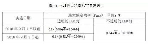 (EC) No 244/2009法規中將電源分為透明電源和不透明電源兩種,電源的能效由較大額定功率Pmax表示,較大額定功率Pmax與適配器的光通量(Φ)有關,具體要求見下表2所示。