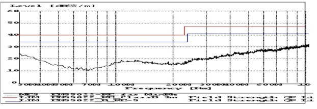 - 將被測設備關電, 確認背景噪聲是否滿足標準要求 (標準要求電波暗室的背景噪聲在限值線以下6dB) 。