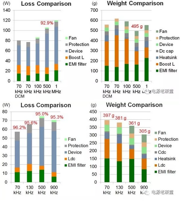 | 電源適配器EMI和干擾 在我接觸EMI前,很多電源適配器工程師以他們有豐富的EMI調(diào)試經(jīng)驗(yàn)來鄙視我們這些菜鳥,搞的我一直以為EMI是門玄學(xué),也有很多人動(dòng)不動(dòng)就拿EMI出來嚇人。我想說電源適配器EMI確實(shí)很難理解,很難有精確的紙面設(shè)計(jì),但是通過研究我們還是能知道大概趨勢指導(dǎo)設(shè)計(jì),而不是一些工程嘴里完全靠trial and error的流程。 這就是我們電源適配器工程師外出機(jī)構(gòu)做測試的實(shí)驗(yàn)室~ ![]() 我先給出結(jié)論,電源適配器EMI確實(shí)和開關(guān)頻率不成線性關(guān)系,某些開關(guān)頻率下,EMI濾波器的轉(zhuǎn)折頻率較高,但是總體趨勢而言,是開關(guān)頻率越高,電源適配器EMI體積越小! 我知道很多人開始噴我了,怎么可能,di/dt和dv/dt都大了,怎么可能EMI濾波體積還小了。我想說一句,共模和差模濾波器的沒有區(qū)別,相同的截止頻率下,高頻的衰減更大!就算你高頻下共模噪聲越大,但是你的記住,這個(gè)頻率下LC濾波器的衰減更大,想想幅頻曲線吧。為了說明這個(gè)結(jié)論,我給出一些定量分析結(jié)果。這些EMI分析均基于AC/DC三相整流,拓?fù)錇榫S也納整流。我分別給出了1Mhz和500Khz的共模噪聲,可以看出,500khz共模濾波器需要的截止頻率為19.2kHz,1MHz為31.2kHz。 ![]() 這張圖給出了不同頻率下共模和差模濾波器轉(zhuǎn)折頻率的關(guān)系,可以看出,一些低頻點(diǎn)EMI濾波器體現(xiàn)出了非常好的特性。例如70Khz,140Khz。而這兩個(gè)開關(guān)頻率是工業(yè)界常用的兩個(gè)開關(guān)頻率,非常討巧,因?yàn)镋MI噪聲測試是150KHz到30MHz。不過這個(gè)也與拓?fù)溆嘘P(guān)。 ![]() 以上數(shù)據(jù)均基于仿真,雖然不能精確的反應(yīng)EMI噪聲的大小,但是趨勢肯定是正確的。說了這么多,我只想表明,開關(guān)頻率的選取相當(dāng)有學(xué)問。如果要以高功率密度為設(shè)計(jì)指標(biāo),開關(guān)頻率并不是越高越好,而是有一個(gè)較佳轉(zhuǎn)折點(diǎn)。下面2張圖給出了維也納整流器和BUCK-type整流器的功率密度趨勢,可以看出,較佳功率密度點(diǎn)不是一個(gè)開關(guān)頻率。對(duì)那些拍著腦瓜選開關(guān)頻率,解決EMI問題并且鄙視過我的老工程師,我還是懷有很大敬意的,但是我想說的是,如果真正想設(shè)計(jì)一臺(tái)較高功率密度的變換器,詳細(xì)的考證是值得的,還不是單純依靠經(jīng)驗(yàn),況且經(jīng)驗(yàn)背后也是一定有理論支持。 ![]() 我不禁問個(gè)問題,都有EMI濾波器,EMI噪聲都符合標(biāo)準(zhǔn),為啥高頻干擾大。難道大家在實(shí)際工程遇到高頻干擾是個(gè)假象?不是的,舉一個(gè)非常簡單的例子,剩下的自己思考吧。 在輸入電壓較高的場合中,一般開關(guān)管驅(qū)動(dòng)的都需要隔離。我們知道隔離后一端的地一般要接到懸浮開關(guān)管的源端,一般這一點(diǎn)的電平是跳變的,以氮化鎵晶體管為例,這點(diǎn)電壓變化率可以達(dá)到140kV/us。而隔離芯片前一端的地是與控制地連接的,你隨便看看隔離模塊電源的手冊,原副邊耦合的寄生電容一般在60pF左右,也是就說在高速開關(guān)瞬間,會(huì)產(chǎn)生大約6A的電流從副邊的地通過電容耦合到原邊,原邊的地電平肯定瞬間產(chǎn)生尖峰,整個(gè)控制系統(tǒng)產(chǎn)生強(qiáng)烈的干擾。所以做高頻的時(shí)候,隔離電源的地線千萬不要平行的鋪在2層PCB中,干擾效果會(huì)更加強(qiáng)烈。 同時(shí)選隔離芯片的時(shí)候也需要注意一個(gè)參數(shù)叫做CM transient immunity(肯定會(huì)給的),這個(gè)參數(shù)較好大于開關(guān)瞬間,橋臂中點(diǎn)電平的變化速率。光耦隔離這個(gè)參數(shù)一般在30kV/us,磁耦在35kV/us,電容耦合在50kV/us(是不是絕望了,都比氮化鎵低,硅器件一般在10kV/us,Sic 30kV/us)。 ![]() 還有很多細(xì)節(jié)可以引起干擾,不過真的不是EMI噪聲做的孽。 我先簡單的把以上內(nèi)容總結(jié)一下: 電源適配器不是開關(guān)頻率越高,功率密度就越高,目前這個(gè)階段來說真正阻礙功率密度提高的是散熱系統(tǒng)和電磁設(shè)計(jì)(包括EMI濾波器和變壓器)和功率集成技術(shù)。 慎重選擇開關(guān)頻率,開關(guān)頻率會(huì)極大的影響整個(gè)變化器的功率密度,而且針對(duì)不同器件,拓?fù)洌^佳的開關(guān)頻率是變化的。 高頻確實(shí)產(chǎn)生很多很難解決的干擾問題,往往要找到干擾回路,然后采取一些措施。 為了繼續(xù)維持電力電子變換器功率密度的增長趨勢,高頻肯定是趨勢。只是針對(duì)高頻設(shè)計(jì)的電力電子技術(shù)很不成熟,相關(guān)配套芯片沒有達(dá)到要求,一些高頻的電源適配器電磁設(shè)計(jì)理論不完善和精確,使用有限元軟件分析將大大增加開發(fā)周期。 文章轉(zhuǎn)載自網(wǎng)絡(luò),如有侵權(quán),請(qǐng)聯(lián)系刪除。 |