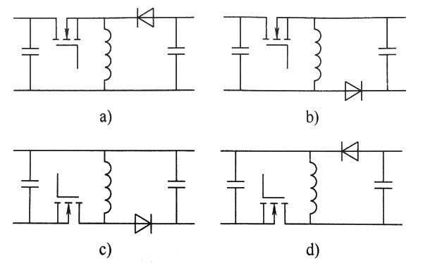 首先看輸出回路:可以將二極管越過負載放置到圖21b電路的二極管的位置,通過這樣的電路元器件易位,輸出與輸入的電壓關系沒變?開關管和二極管的工作狀態沒變?電感的工作狀態沒變,因此電路變換是等效的?