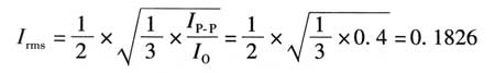 這時紋波電流的大小主要看輸出濾波電感對電流的平滑作用如何?如果輸出電流在20%負載仍能連續則輸出濾波電容器僅承擔輸出電流的40%峰峰值紋波電流,如紋波電流近似為三角波時,其有效值為
