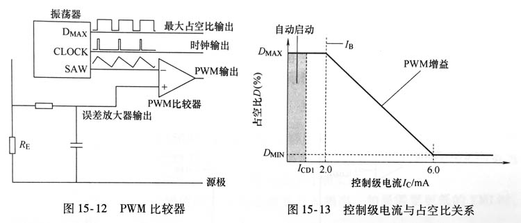從圖15-13中可以看到:控制極電流小于2mA時,占空比為較大狀態?在控制級電流小于1m1時為自動啟動狀態?