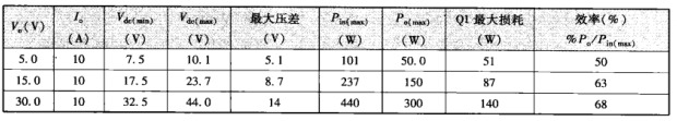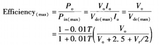 | 直到20世紀60年代初期,這種簡單的直流耦合串聯型線性調整器一直是數十億美元產值的電源適配器工業的主要產品。但是,這種電源適配器電路有以下缺陷。 ·這種電源適配器只能降壓。 ·5伏電源適配器的輸出與輸入之間有公共端,當輸入和輸出之間,或多路輸出之間需要直流隔離時,電路的設計會變得非常復雜。 ·其初始直流輸入電壓(即圖1。1(a)中的V)一般由工頻變壓器次級整流獲得,而工頻變壓器的體積和重量限制了它的推廣應用。 ·如1。2。3節所介紹的,這種電路的效率非常低,造成非常大的功率損耗,需要較大的散熱片。 電源適配器串接晶體管的功率損耗 線性調整器的主要缺點是串接晶體管存在過大功耗。所有的負載電流都必須通過串接晶體管,其功耗為(V-V)l。大多數情況下,串接NPN型晶體管的較小壓差(V。-V)為2。5V。假設整流濾波電容足夠大,可忽略紋波。若直流輸入電壓由工頻變壓器次級整流獲得,則次級匝數選擇應保證交流網壓較低時對應的次級整流電壓為(V。+2。5),此時Q1的損耗較小。 然而,當交流網壓較高時Q1的壓差將大很多,串接晶體管損耗嚴重,電源適配器效率明顯降低。由于25V較低壓差的存在,在額定輸出電壓較低時造成的損耗顯得更為嚴重。 以下15W電源適配器例子可以說明這一點。假設交流輸入電壓的波動范圍為±15%,以下列3臺線性調整器為例, ·輸出5v/10A ·輸出15V/10A ·輸出30V/10A ![]() 假設次級濾波電容足夠大,整流電壓紋波可忽略。次級整流獲得的直流電壓V的波動范圍與交流網壓波動范圍對應,均為±15%。若網壓輸入較低(-15%)時,變壓器次級電壓為(V+2。5),則網壓輸入較高(+15%)時,較大直流輸入電壓為1。35(V,+2。5)。調整器具體參數如下。 由上面的數據可知,電源適配器直流輸出電壓低時,調整器的效率比輸出電壓高時低很多。若不忽略輸入網壓紋波且容許網壓波動±15%,則5V輸出調整器的效率只有32%~35%。 線性調整器的效率與輸出電壓的關系 下面將分析效率在下列情況下的變化范圍:電源適配器輸出電壓值從5V到100V,并且電網電壓波動范圍從±5%~±15%,考慮實際紋波。 假設電源適配器較小壓差是2.5V,并保證在較小輸入網壓產生的輸入紋波的谷值處仍有25V的壓差,如圖1。1(b)所示。據此,可計算出不同輸入網壓波動范圍和不同輸出電壓下調整器的效率。 設輸入電壓為額定電壓的±7%,則工頻變壓器次級匝數的選擇應保證當輸入網壓較小時,紋波的谷值仍比預期的輸出電壓大2.5V(設較小壓差為2.5V)。 令電壓紋波的峰一峰值為V,。當網壓輸入較低時,輸入到晶體管的直流電壓(平均電壓)為 ![]() 當網壓輸入較高時,輸入到晶體管的直流電壓為 ![]() 網壓輸入較高時,輸入功率較大,較惡劣情況下的較大效率為 ![]() 圖所示為紋波電壓峰一峰值為8V時,網壓波動高限、輸出電壓和效率的關系曲線。以后會提到,對于60Hz全波整流器,若選取每1A負載電流對應濾波電容值為1000uF,則紋波電壓峰一峰值為8V。 從圖可見,即使電源適配器輸出電壓為10V,對于典型的±10%網壓波動值,效率已低于50%。正是線性調整器的低效率和工頻變壓器笨重的缺陷促進了開關電源適配器的研制和開發。 當然,若能使初始直流電壓得到±5%左右的預調整(后面介紹的大部分拓撲都滿足這一點),而輸出又需要進一步穩壓,則應用線性調整器還是合理的?,F在市場上有1。5A塑封集成線性調整器,價格約為50美分。也有3~5A價格稍貴金屬封裝的該類調整器,但內置串接晶體管的功耗很大,輸出5A或以上時的功耗更加嚴重。 ![]() 12w電源適配器線性調整器效率與輸出電壓的關系曲線(根據式1。2,式中濾波電容紋波電壓峰峰值取8V)??梢?,電源適配器若對交流輸入V。較低(網壓波動低限輸入)時對應紋波谷值保證2。5V壓差,則交流輸入V較高時,效率較低。