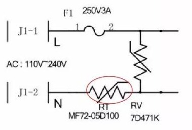 TC是以氧化錳等為主要原料制造的精細半導體電子陶瓷元件。電阻值隨溫度的變化呈現非線性變化,電阻值隨溫度升高而降低 。 利用這一特性, 在電路的輸入端串聯一個負溫度系數熱敏電阻增加線路的阻抗, 這樣就可以有效的抑制開機時產生的浪涌電壓形成的浪涌電流。 當電路進入穩態工作時, 由于線路中持續工作電流引起的NTC發熱,使得電阻器的電阻值變得很小, 對線路造成的影響可以完全忽略。